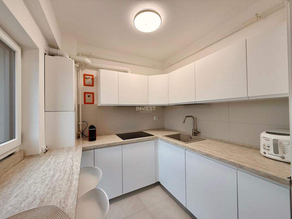 - Bucătărie modernă: plită electrică cu inducție, cuptor electrică, cuptor microunde;