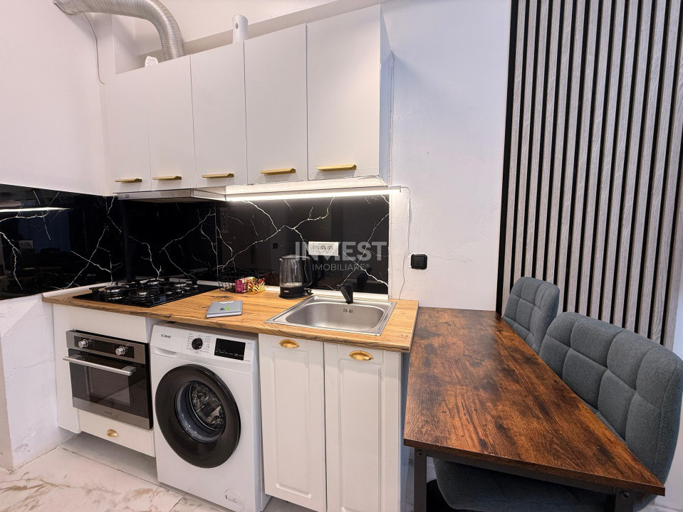 Apartamentul se desfășoară pe o suprafață de 25 MP, compartimentarea fiind una practică.