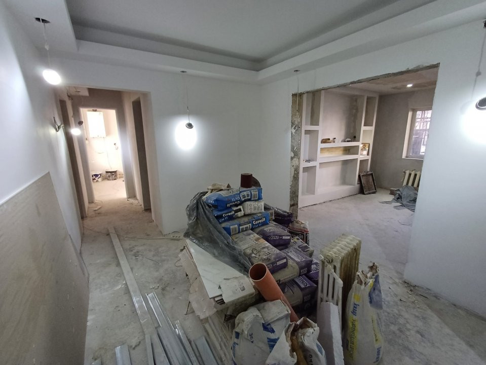 Stare și renovare: Apartamentul a fost început spre renovare, iar unele finisaje sunt deja realizate. Acesta oferă oportunitatea de a finaliza renovarea conform gusturilor și necesităților proprii. În apartament se regăsesc următoarele materiale destinate renovării: sapa autonivelantă, parchet, gresie, țevi de cupru, cadă și uși, pe care le puteți utiliza pentru a personaliza spațiul.