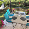 *Grădină amenajată cu gazon, arbori ornamentali și pomi fructiferi.