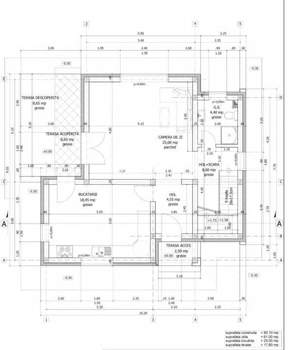 Parter: living spațios, bucătărie separată, baie, hol, terasă
