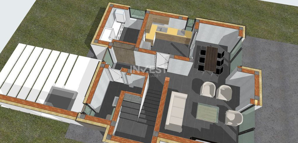 Structură și construcție: Fundații beton armat C20/25, structură calculată seismic, zidărie cărămidă GVP 25 cm, planșee beton armat, șarpantă lemn , învelitoare tablă fălțuită premium.