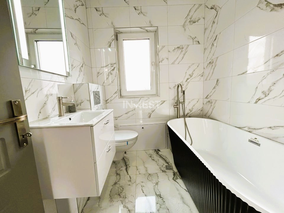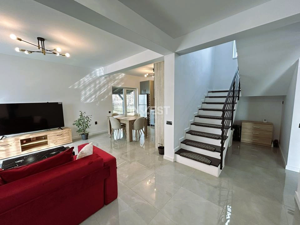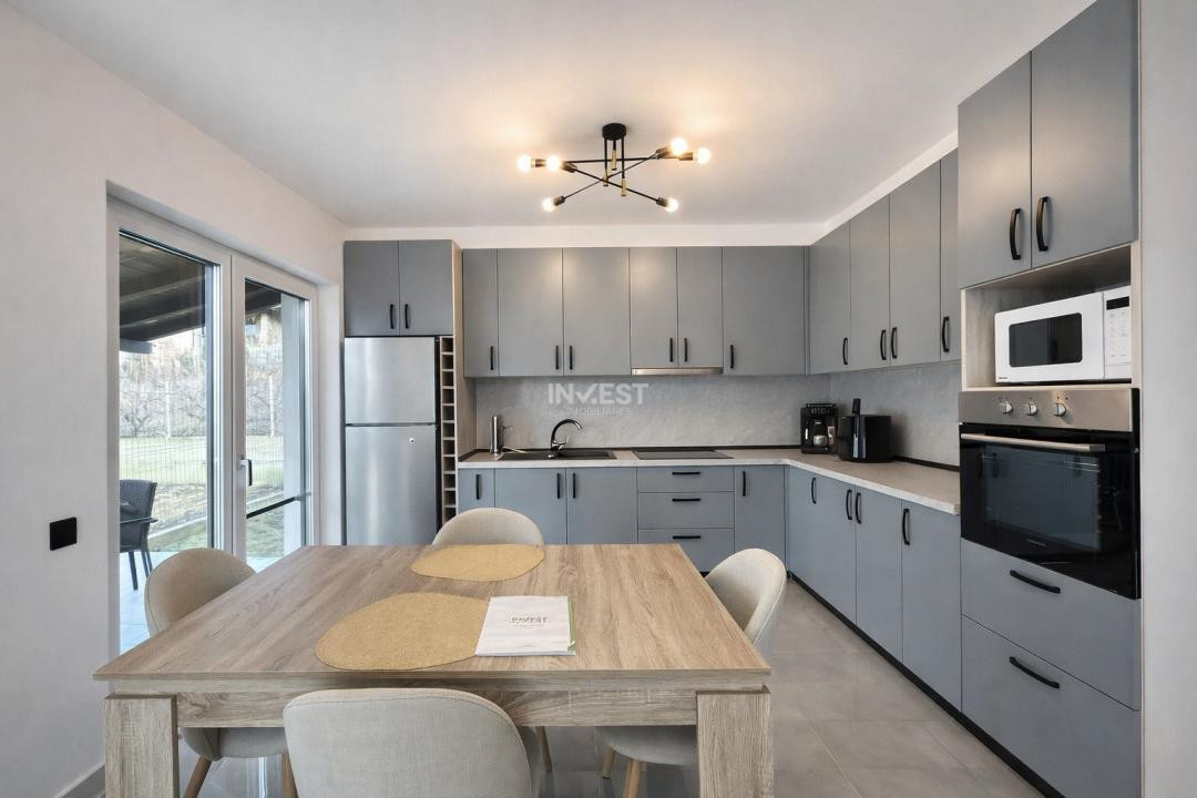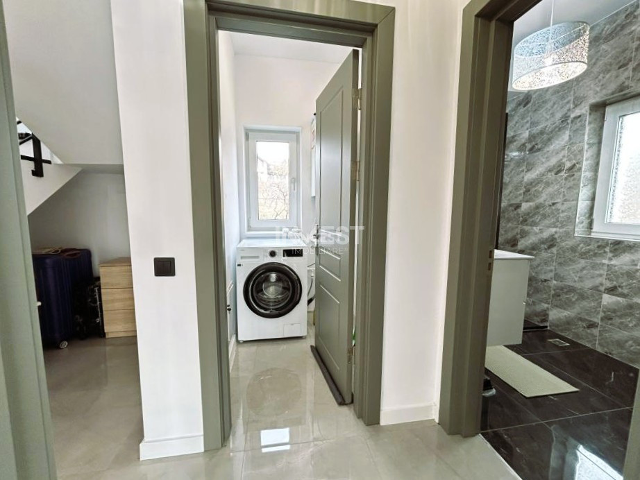 Casa se vinde exact ca în fotografii, complet mobilată și utilată, cu mobilier și electrocasnice aproape noi: mașină de spălat, plită electrică, televizor, toalete suspendate cu rezervoare încastrate, cabine de duș cu rigole de scurgere în pardoseală etc.
