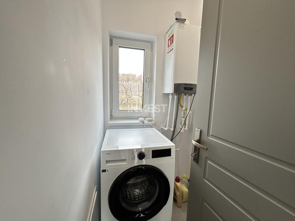 În curte regăsim terasa acoperită cu acces din bucătărie, 2 locuri de parcare amenajate, grădină îngrijită și mașină de tuns iarba.