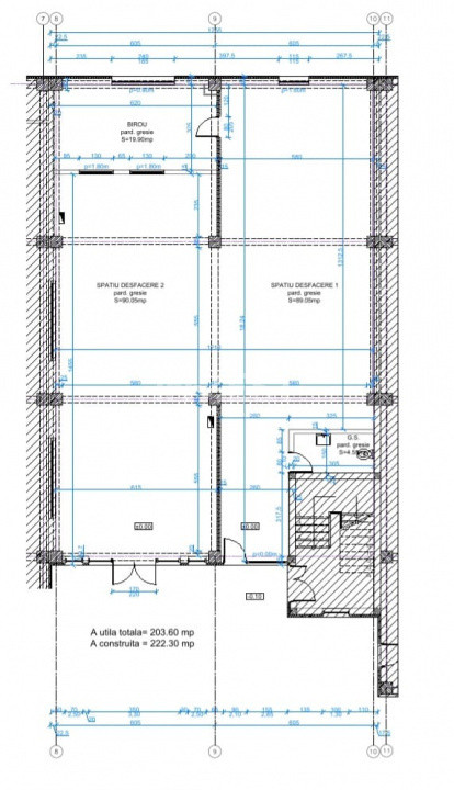 Spatiul are o suprafata utile de 204 mp si o suprafata construita de 222 mp.